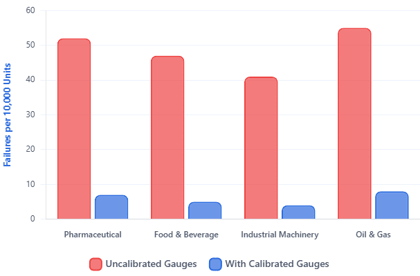 Production lines and critical processes using properly calibrated digital pressure gauges show dramatically lower failure rates than lines running with uncalibrated or overdue instruments.